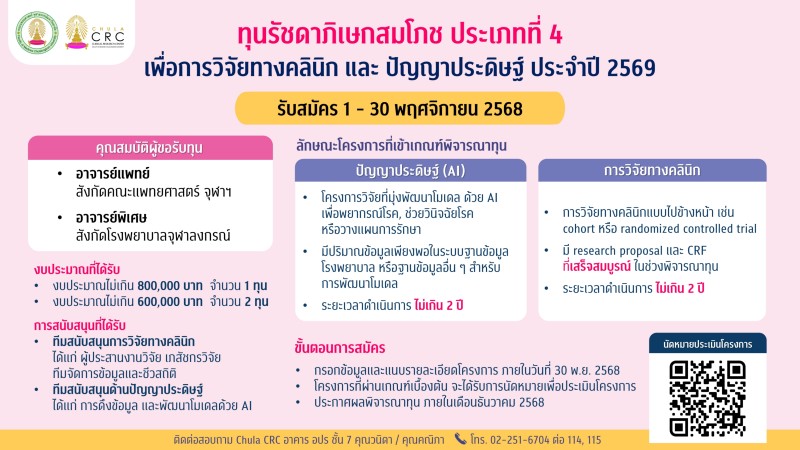 CHULA CLINICAL RESEARCH CENTER (CHULA CRC), Faculty of Medicine, King Chulalongkorn Memorial Hospital 7th Floor Aor Por Ror Building, Rama 4 Rd., Pathumwan, Bangkok 10330